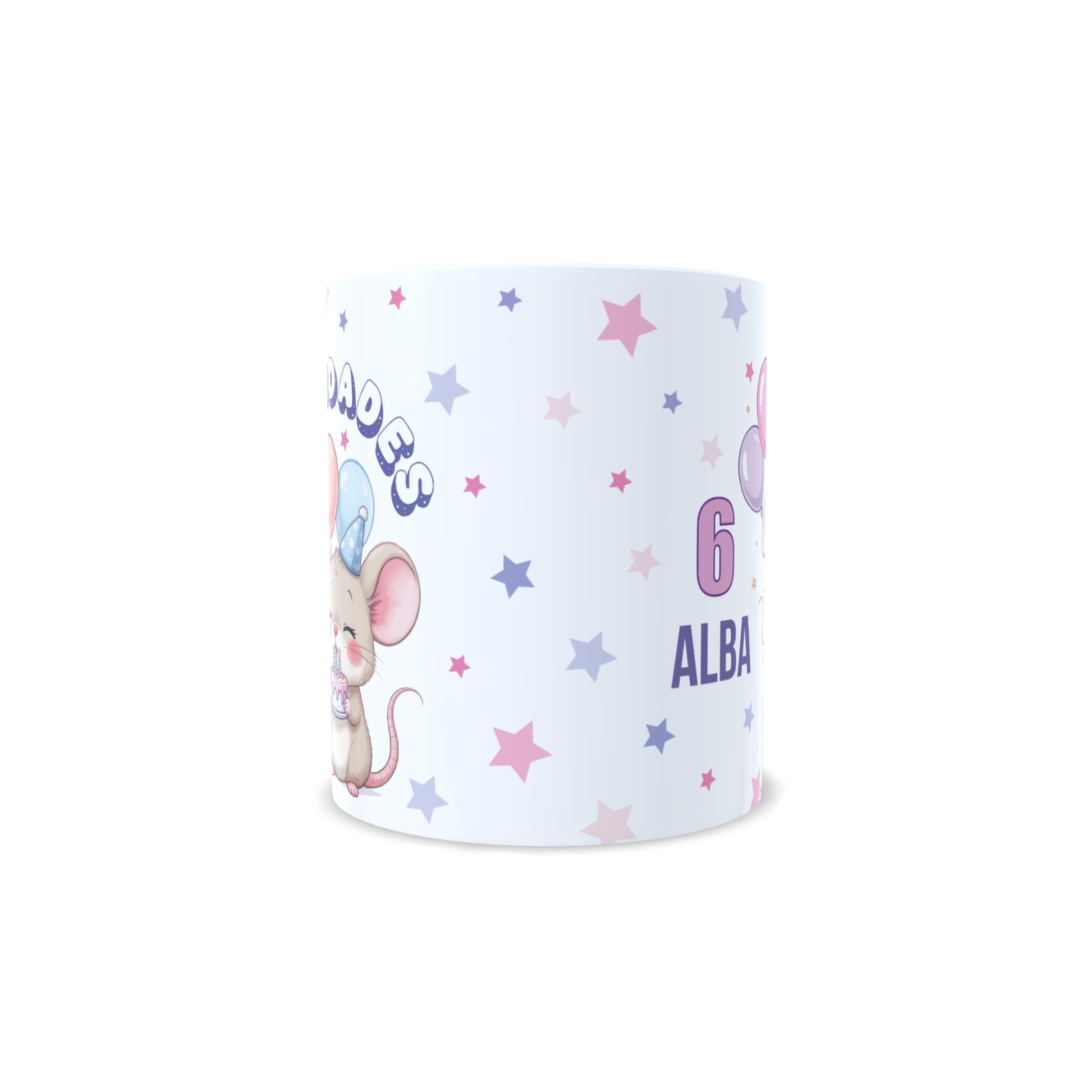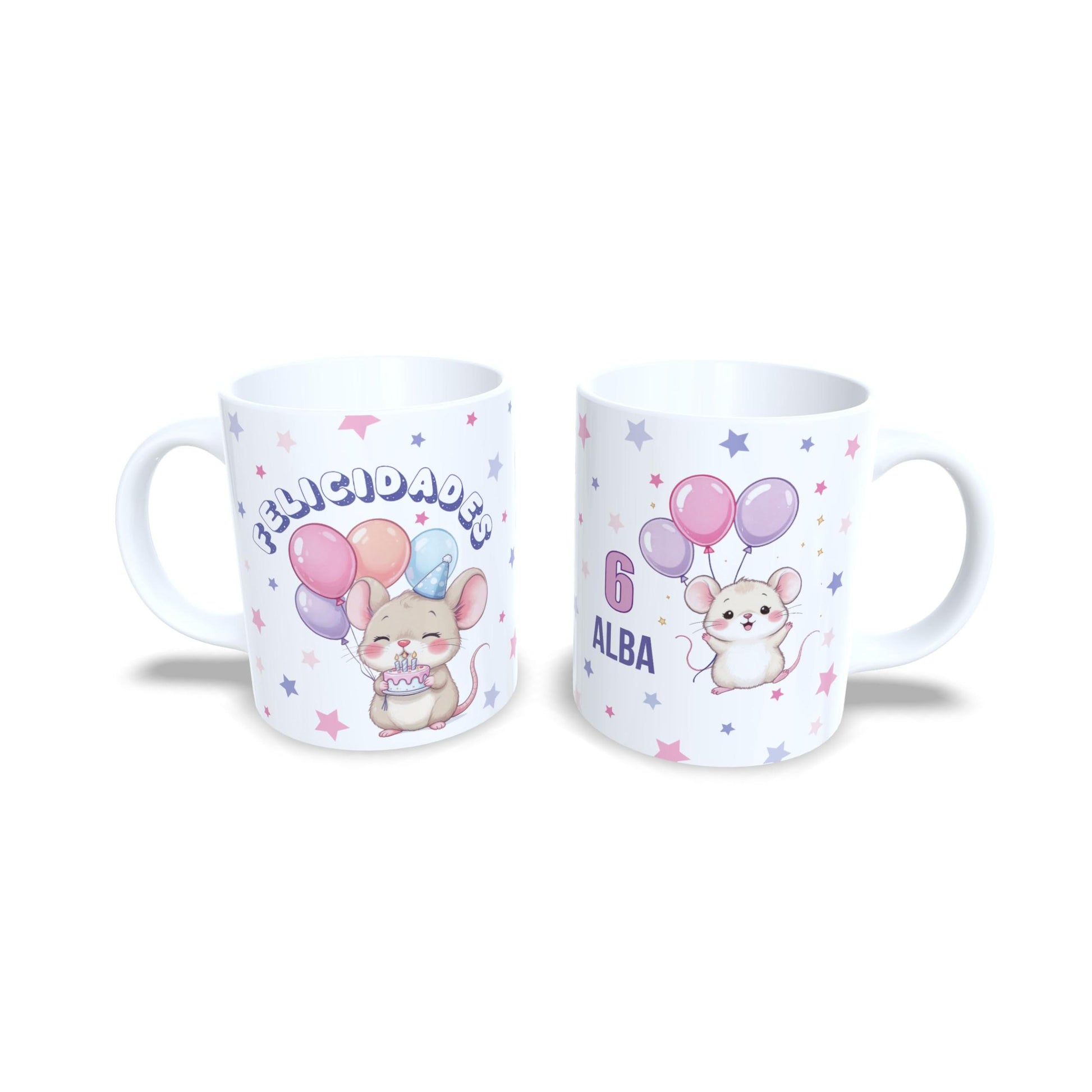 Cumpleaños ratoncito felicidades - Taza con nombre y edad raton