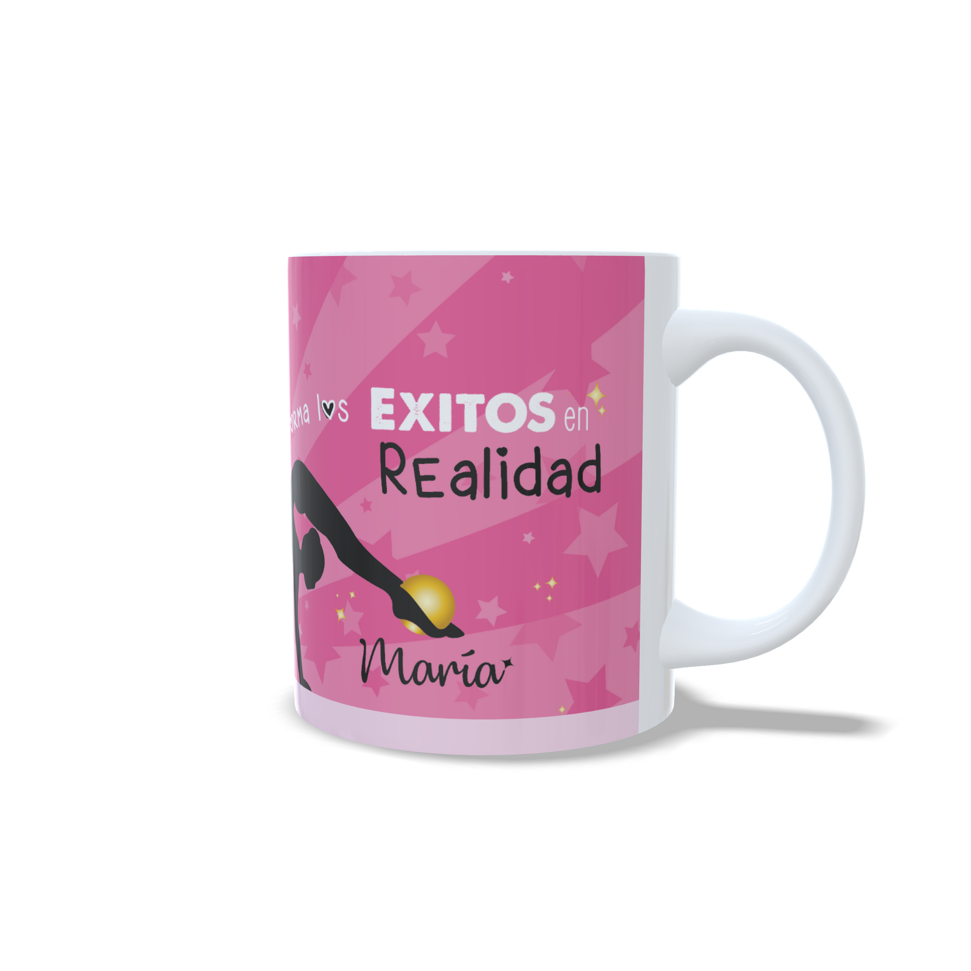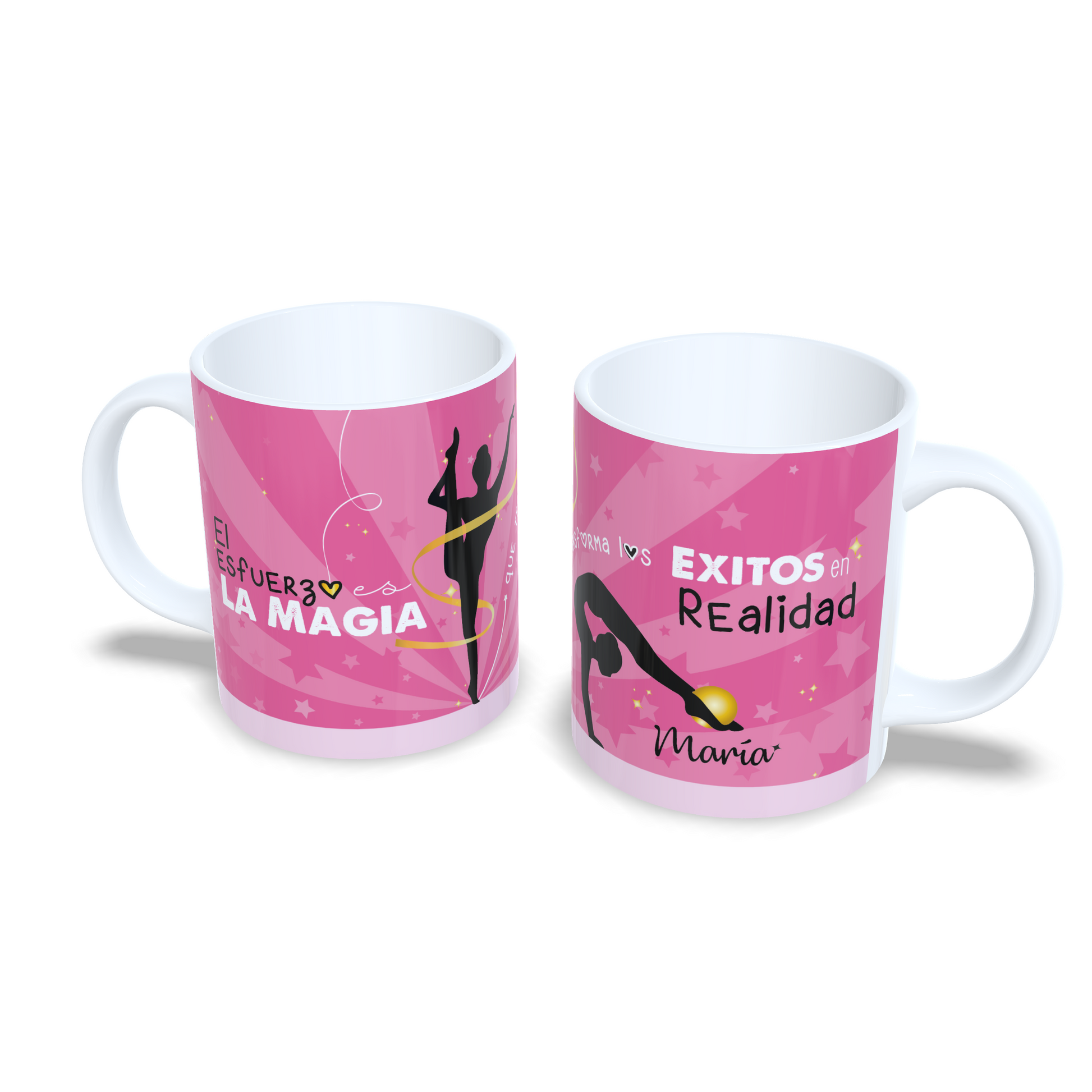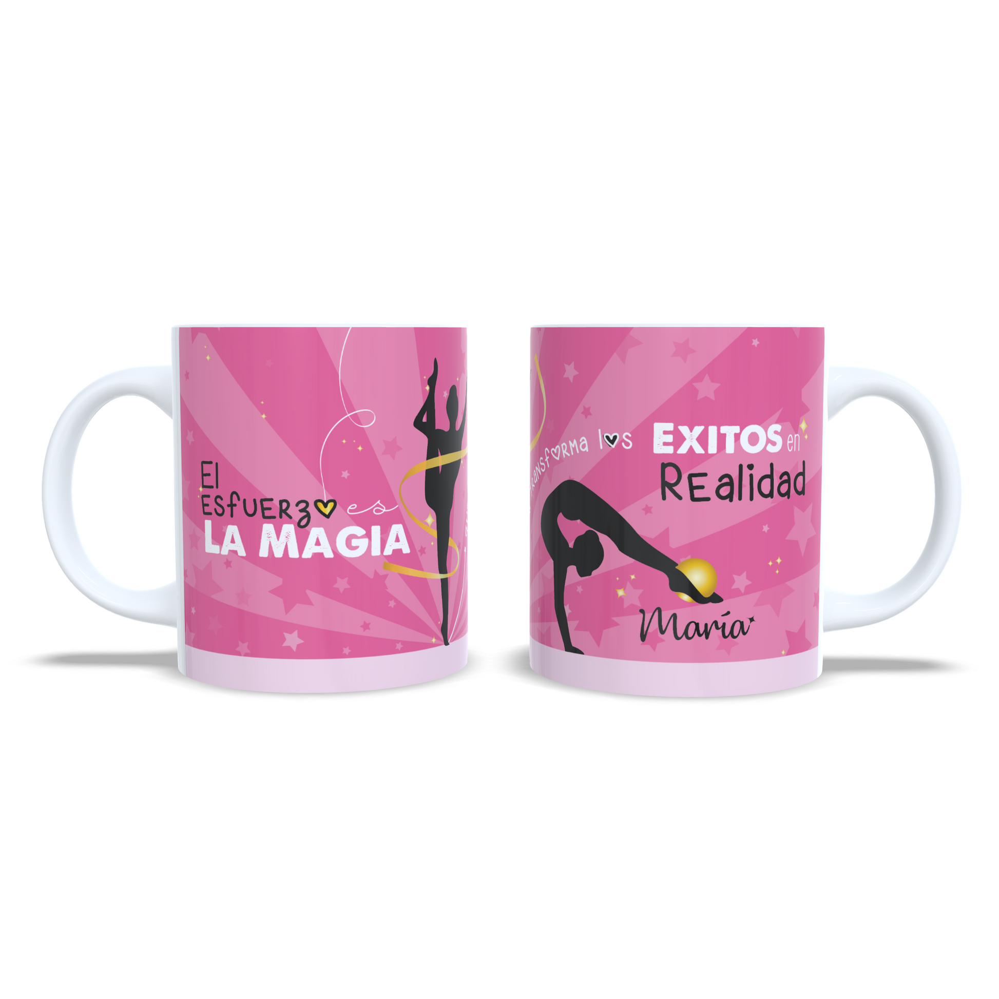 Personaliza con el nombre y disfruta de esta taza colorida llena de estilo. Perfecta para gimnastas y entrenadoras que aman la gimnasia rítmica.