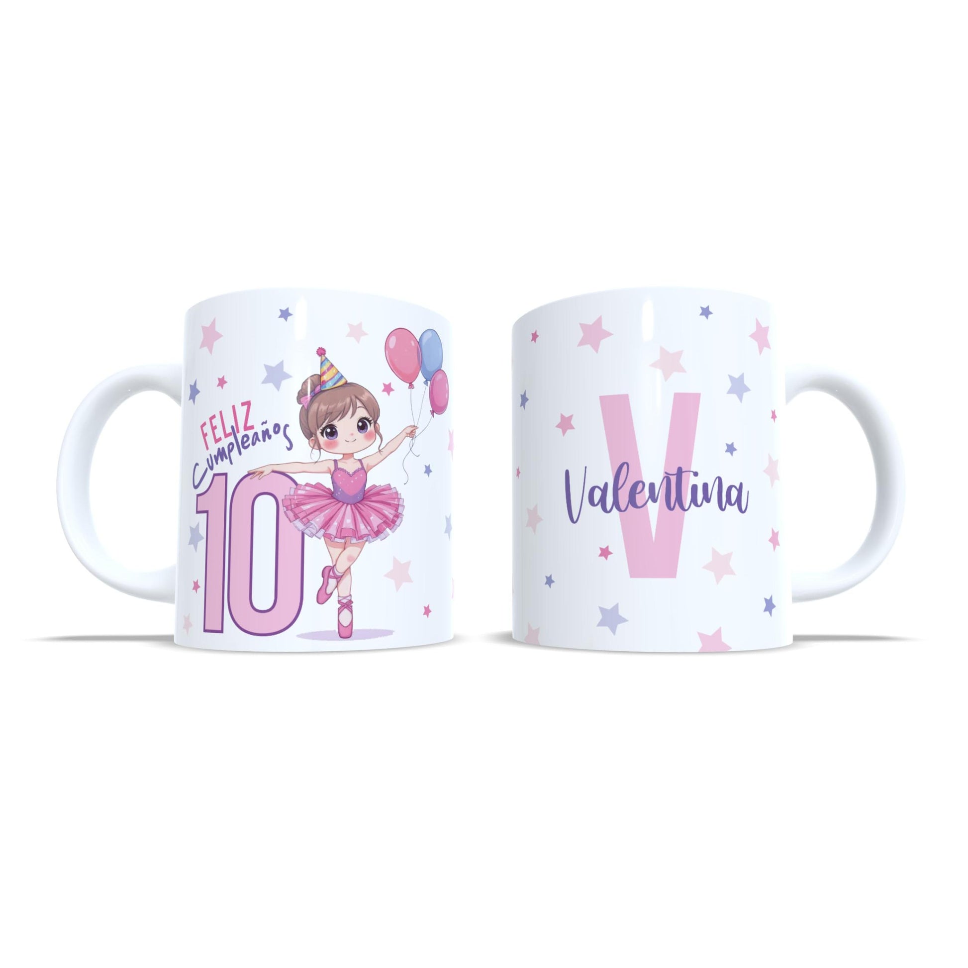 Celebra su cumpleaños con estilo y ternura 🎂. Esta taza de ballet kawaii muestra una niña bailarina en tonos rosa y morado, con la palabra “Felicidades”. Personalízala con nombre e inicial para un regalo único y hecho a medida.