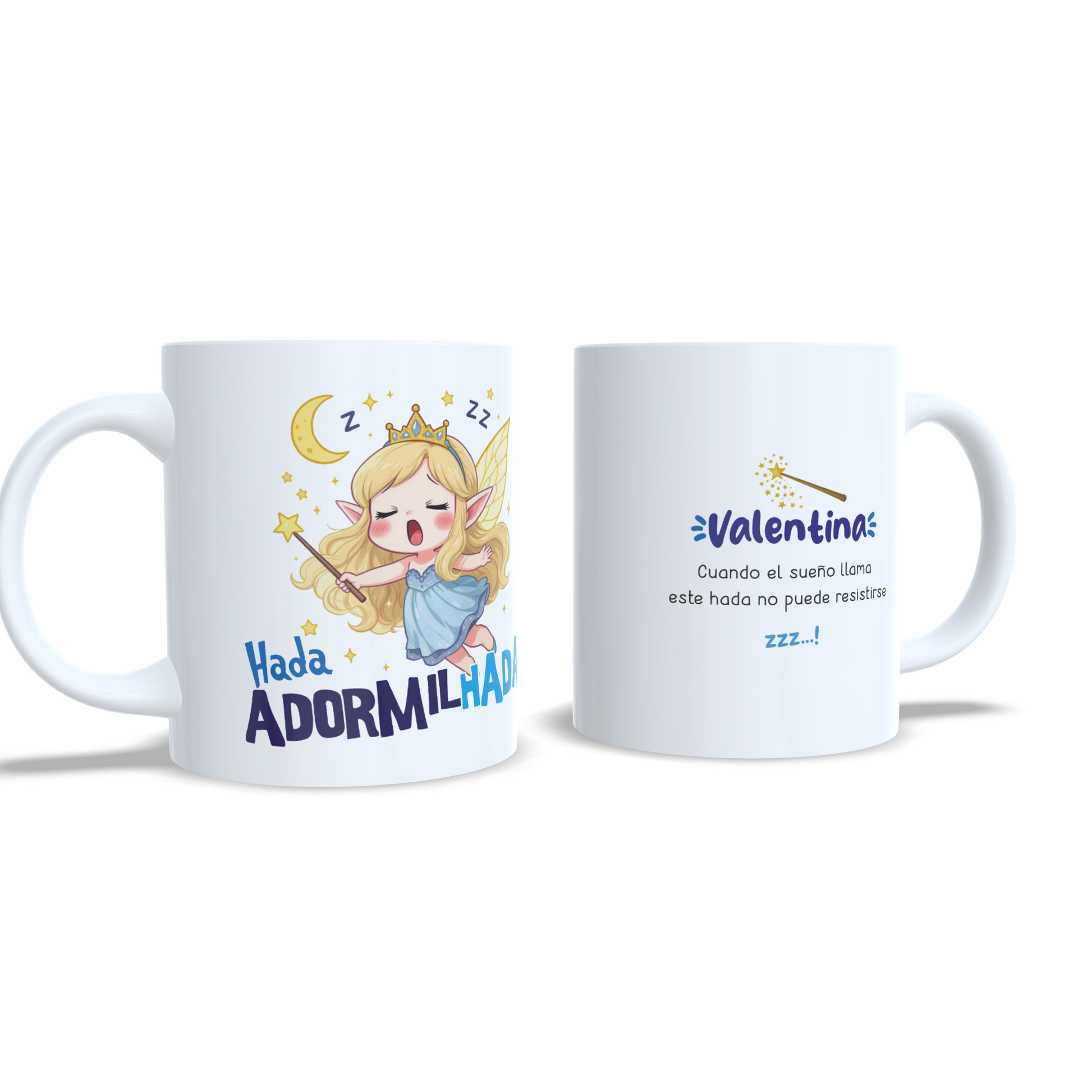 Taza del hada Adormilada, mágica y personalizada, perfecta para niñas y mujeres soñadoras. Con un diseño kawaii lleno de estrellas y nubes, luciendo su pijama y alas, transmite ternura y calma. Ideal para cumpleaños, Navidad o Día de la Madre. Personalízala con el nombre que quieras y convierte cada sorbo en un detalle único. Apta para microondas y lavavajillas. Adormilada no madruga… pero sueña fuerte.