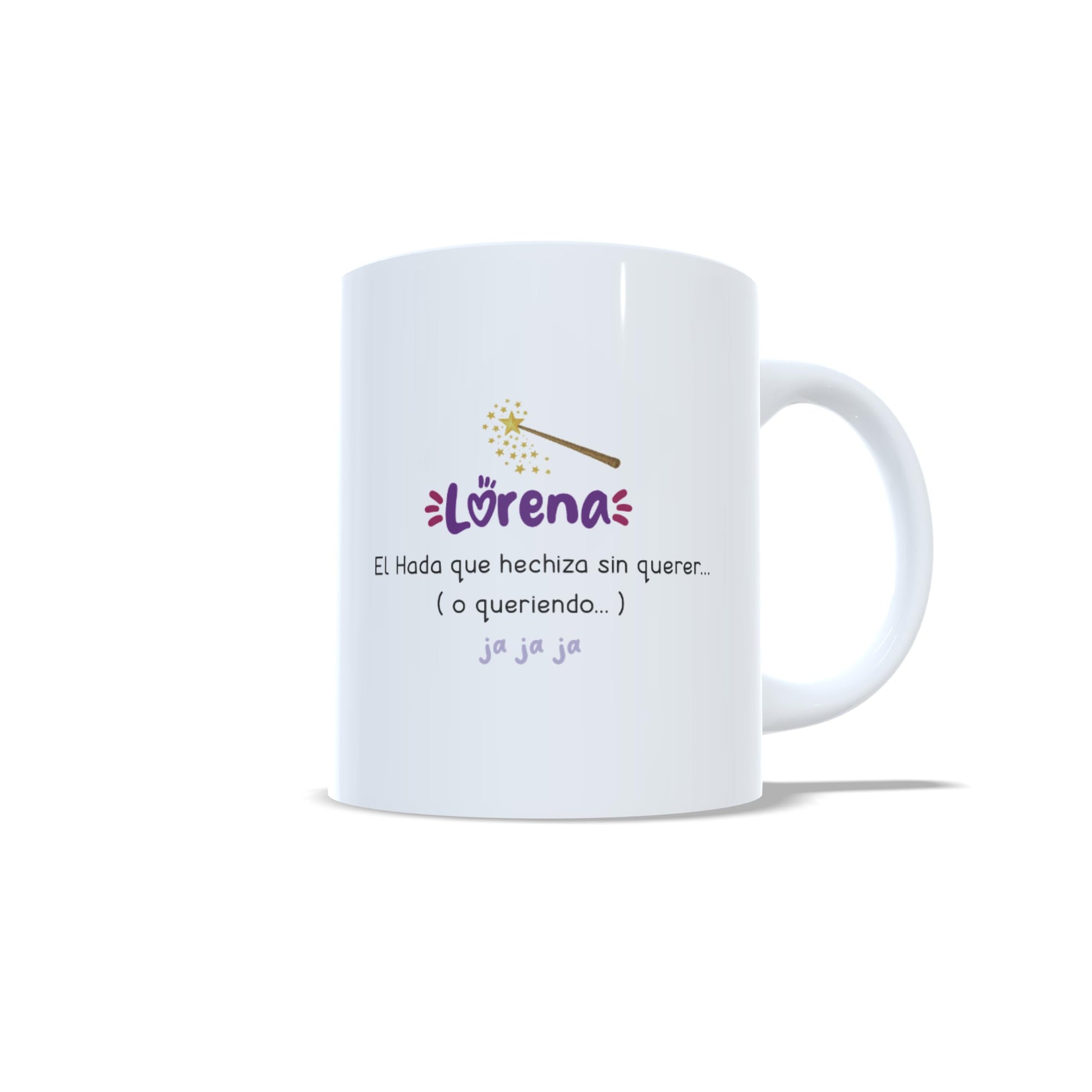 El hada Embrujhada despliega su varita entre chispas y burbujas mágicas, con un sombrero lleno de estrellas y un vestido tejido con la noche. Esta taza divertida y personalizable con nombre convierte cada sorbo en un ritual de magia y diversión. Perfecta para niñas y mujeres que aman lo misterioso y lo kawaii, ideal para cumpleaños, Navidad, amigo invisible o cualquier momento mágico.