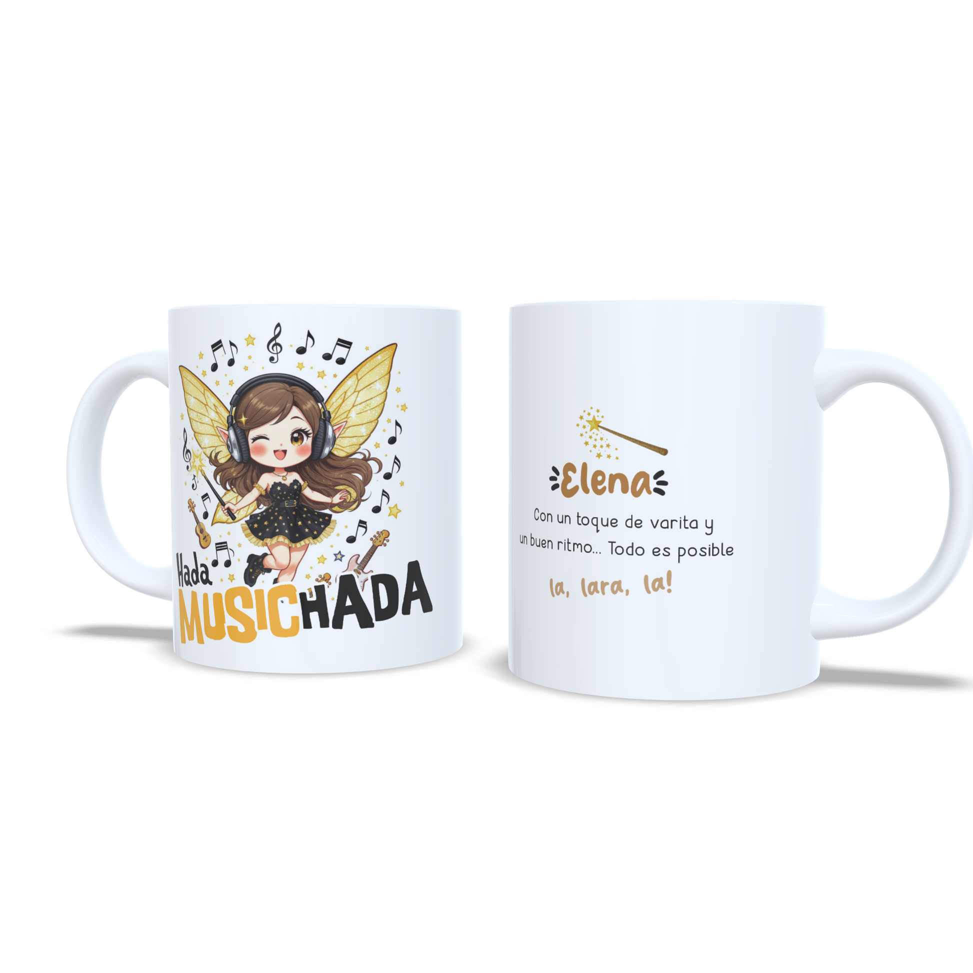 El hada Music-hada vive rodeada de notas flotantes, auriculares mágicos y un micrófono encantado que brilla con cada melodía. Su diseño kawaii y lleno de ritmo transmite alegría y fantasía, perfecta para quienes sienten que la música es parte de su vida. Esta taza divertida y personalizada con nombre pertenece a la colección de hadas mágicas divertidas, ideal como regalo para niñas, mujeres o amantes de la música que disfrutan de un toque original en su día a día. Personalízala con el nombre que quieras y convierte cada sorbo en un momento musical mágico.