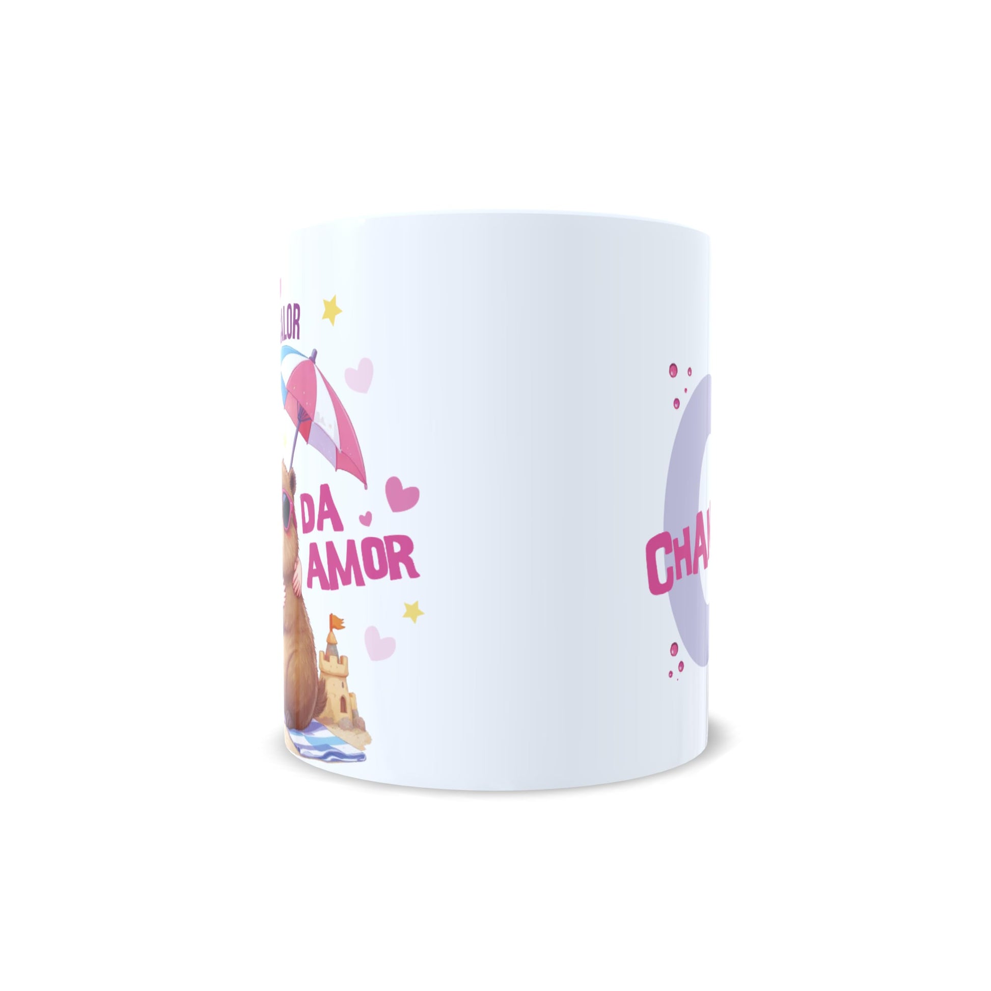 Sorprende con esta adorable taza de capibara kawaii que transmite ternura y diversión bajo el sol. El diseño muestra a una niña abrazando a su capibara en la playa, ambos sentados en una hamaca, con sombrilla y gafas de sol. La frase “Mi capibara no da calor, da amor” añade un toque entrañable perfecto para regalar en verano, cumpleaños o como detalle especial. La taza puede personalizarse con el nombre y la inicial del niño o niña, convirtiéndola en un regalo único y emotivo. Fabricada en cerámica resistente, es apta para microondas y lavavajillas, ideal para usar a diario o conservar como recuerdo. Esta taza kawaii infantil destaca por su estética dulce y alegre, y es ideal para los pequeños amantes de los animales exóticos y los diseños personalizados.