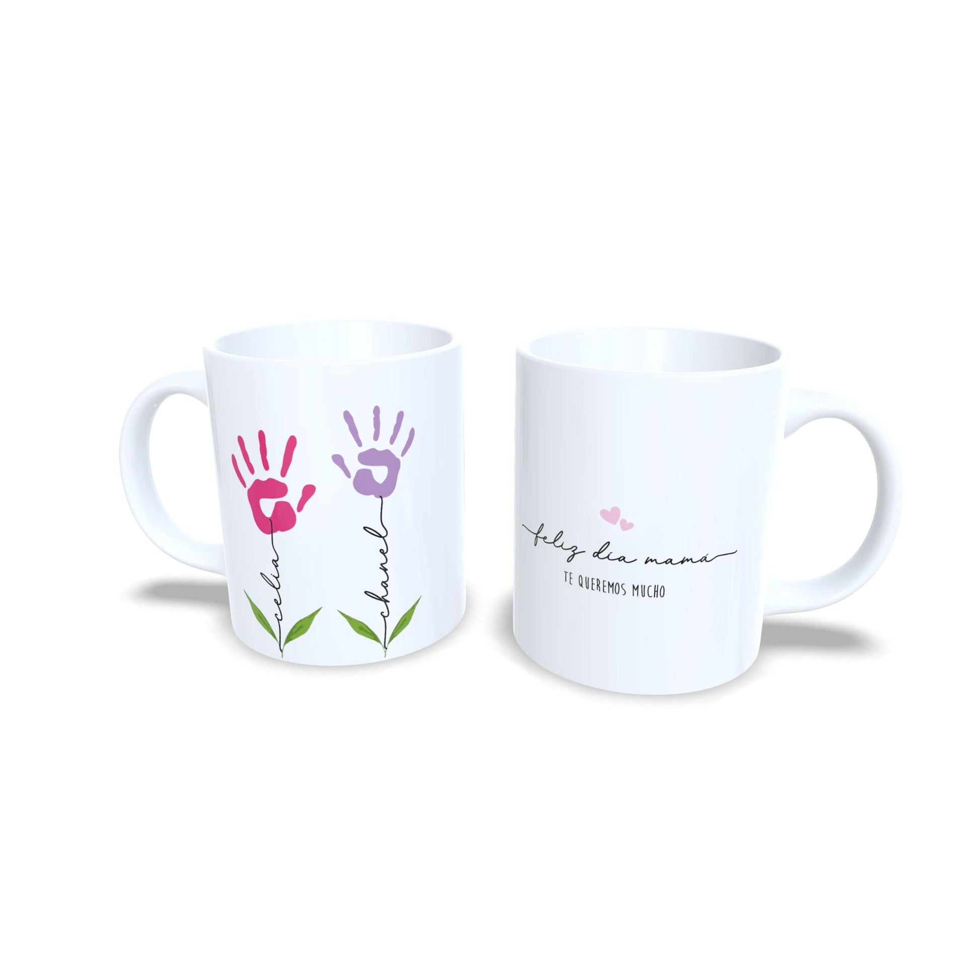 Un regalo lleno de amor, creatividad y significado. Esta preciosa taza personalizada para el Día de la Madre presenta un diseño único con flores hechas con huellas de manos ilustradas, donde puedes añadir los nombres de hijos/as en los tallos. Además, puedes elegir los colores de cada flor y añadir un mensaje personalizado para convertirla en un recuerdo especial y único.