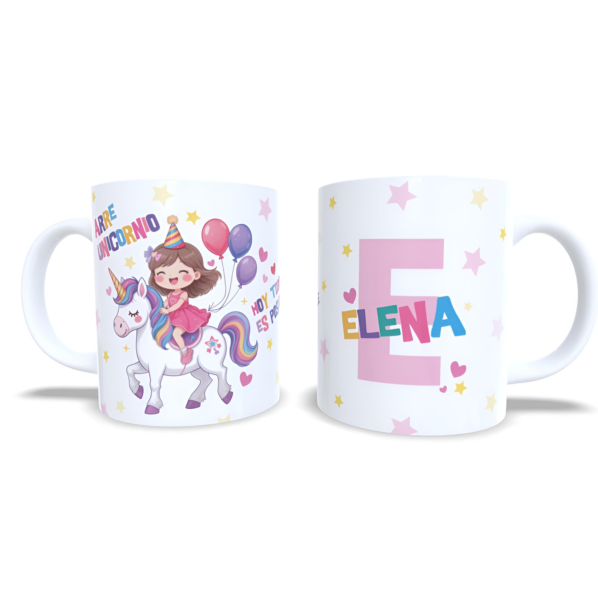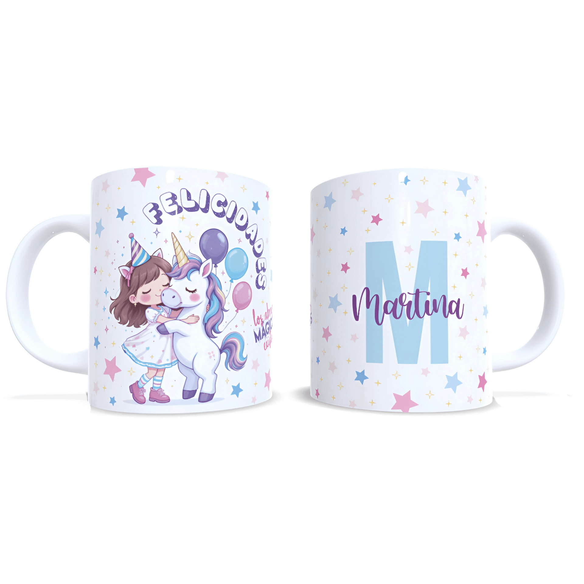 Taza personalizada cumpleaños niña subida en unicornio regalo nombre Enna Blues