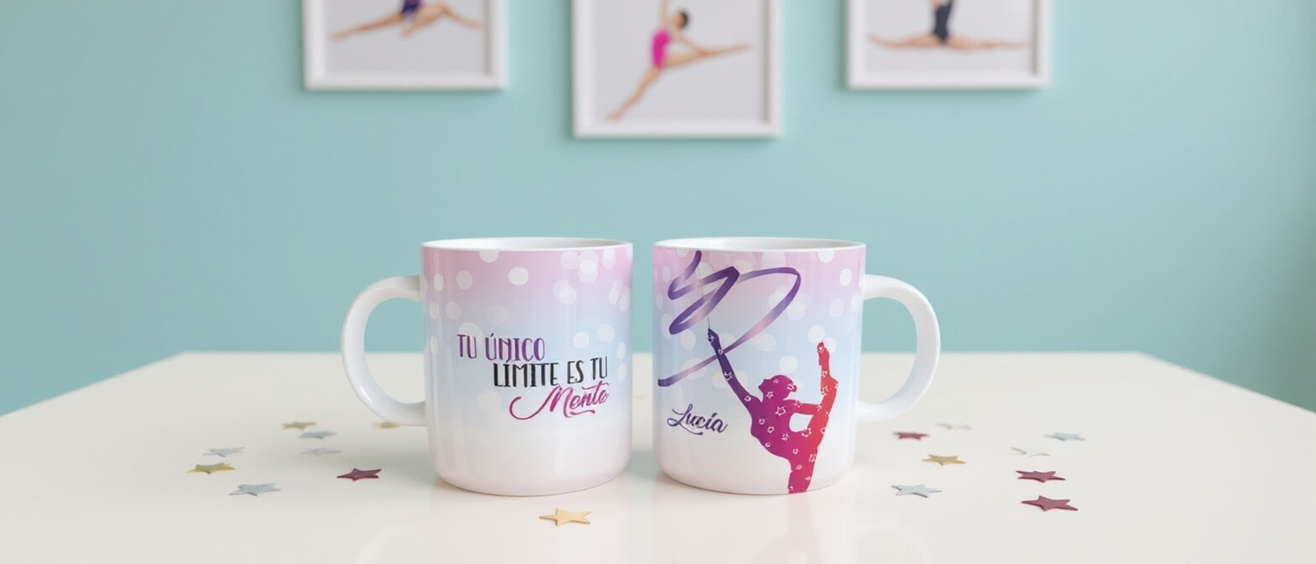 Taza personalizada diseñada para gimnastas de Gimnasia rítmica. Regalo motivacional para no rendirse y luchar cada día por sus sueños y objetivos. Pertenece a la