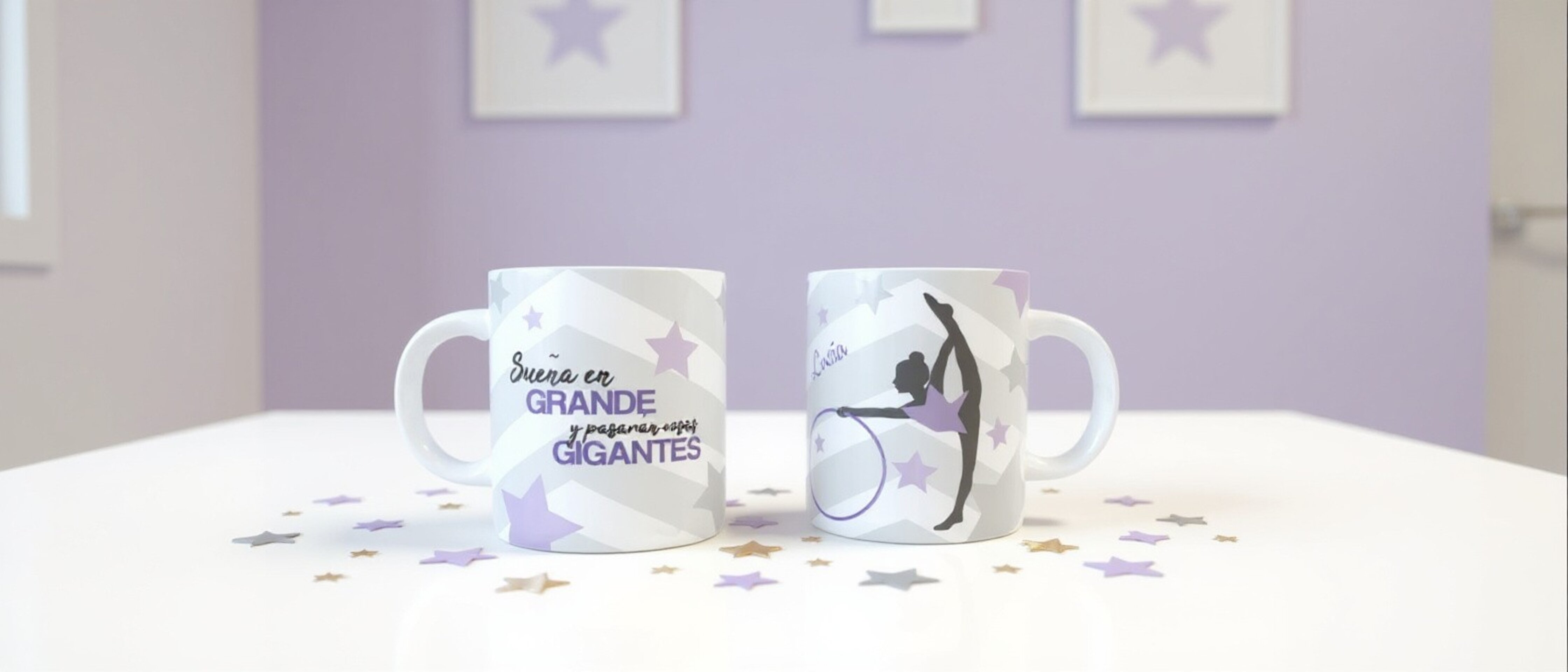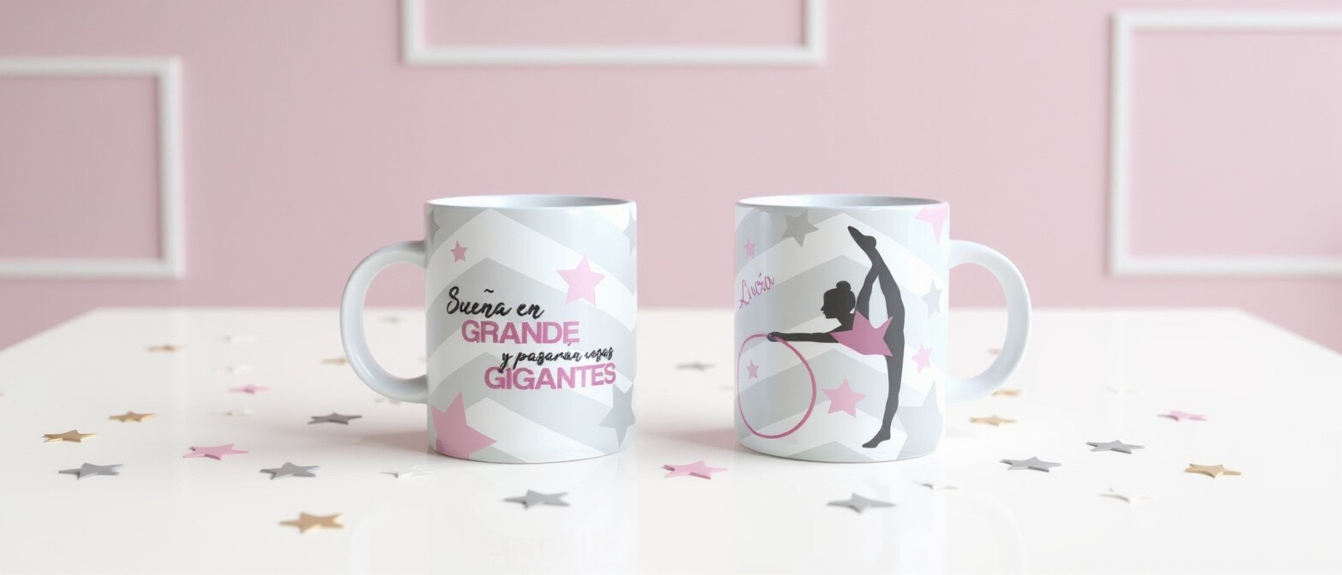 Taza personalizada diseñada para gimnastas de Gimnasia rítmica. Regalo motivacional para no rendirse y luchar cada día por sus sueños y objetivos. Pertenece a la