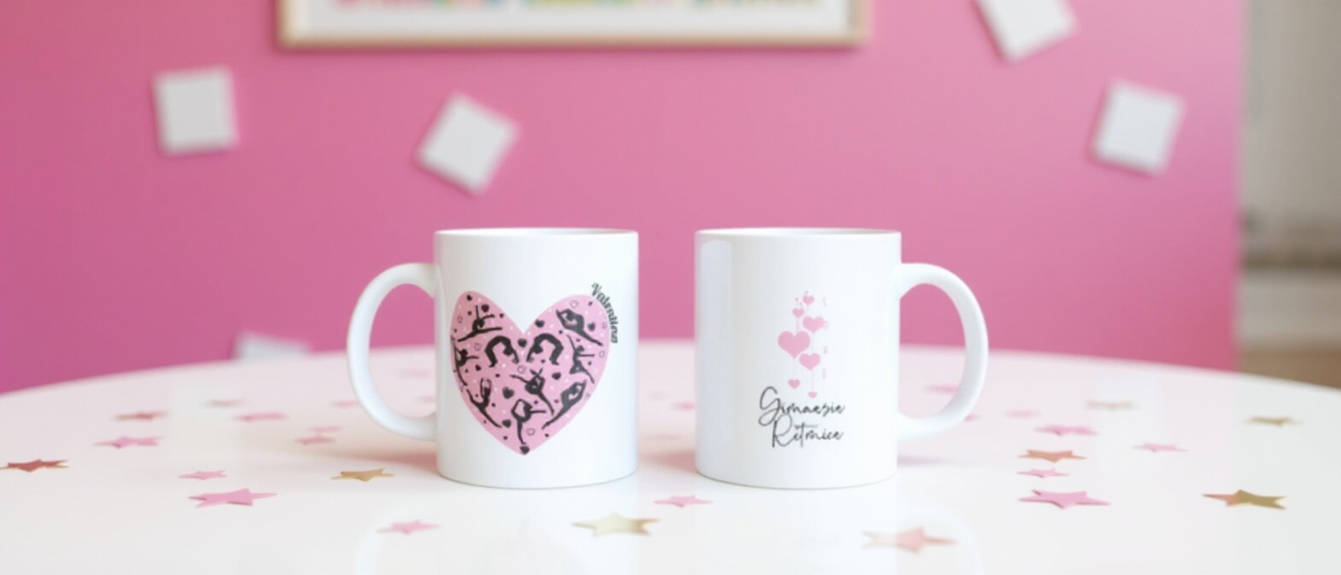 Esta taza personalizada es un regalo perfecto para cualquier amante de la gimnasia rítmica. El diseño único presenta un corazón formado por siluetas de gimnastas
