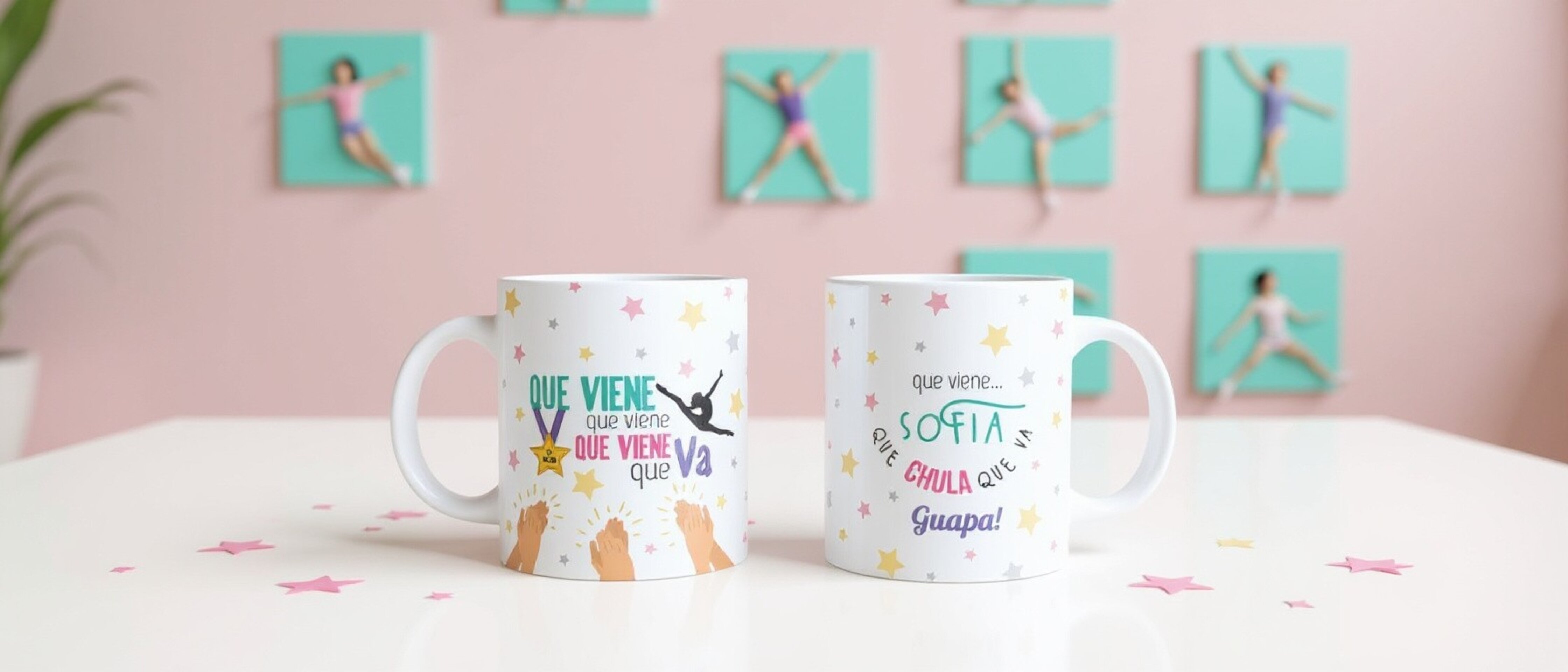 Taza personalizada diseñada para gimnastas de Gimnasia rítmica. Regalo motivacional para no rendirse y luchar cada día por sus sueños y objetivos. Pertenece a la colección